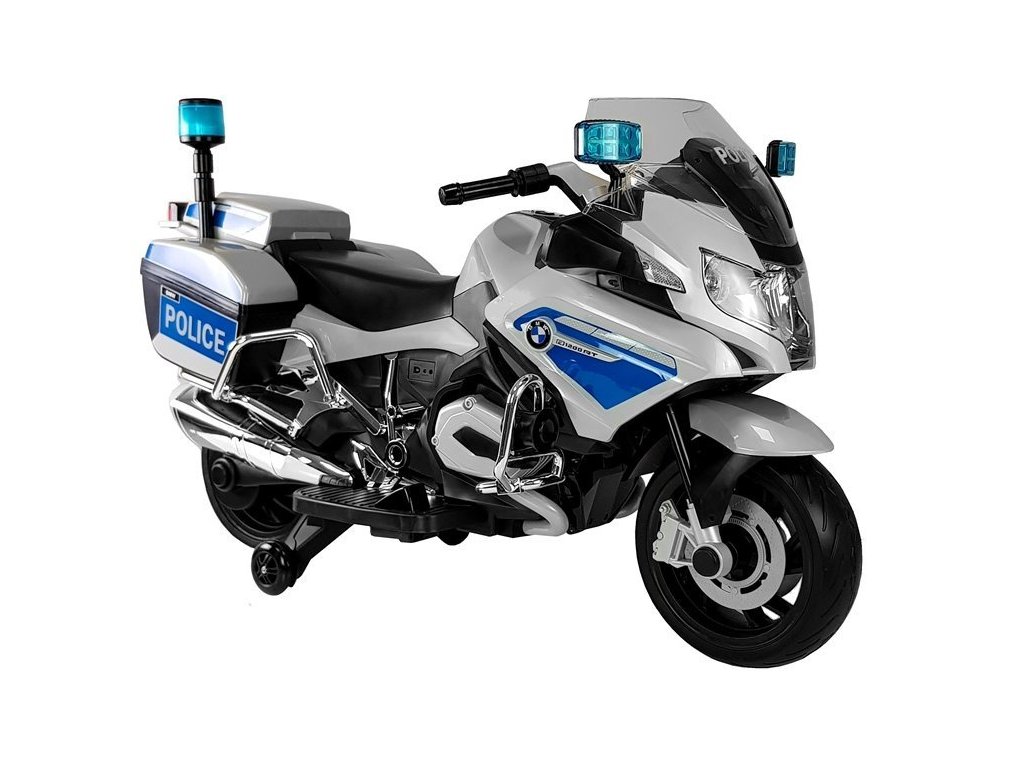 - Stříbrný policejní motocykl BMW R1200 na akumulátor V naší nabídce najdete hračky, které splní sny všech dětí
