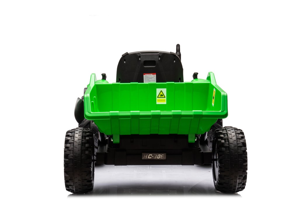 Představujeme vám elektrický traktor s příjívesem model HC-306 v elegantní světle zelené barvě, který je poháněn 24V baterií Tento dětský traktor přichází s úžasnými funkcemi a je dokonalým společníkem pro malé průzkumníky, kteří mají rádi dobrodružství na čerstvém vzduchu