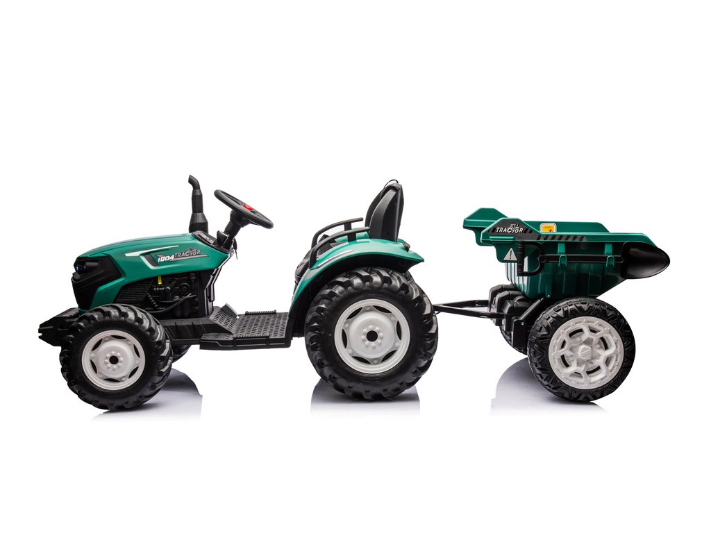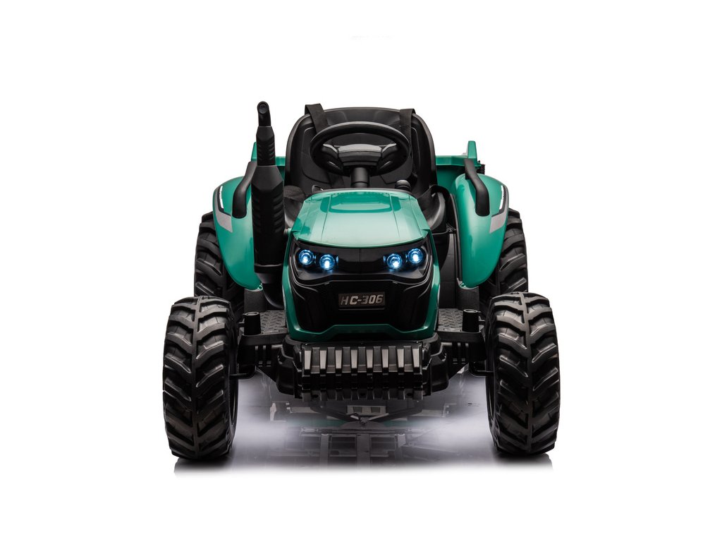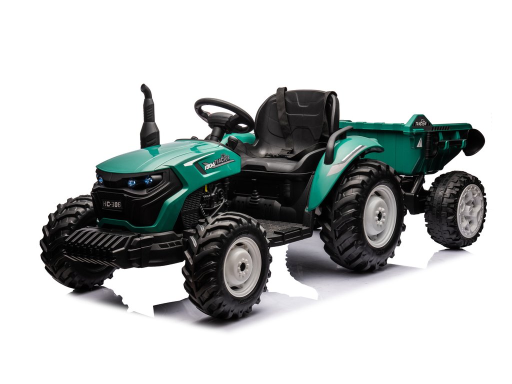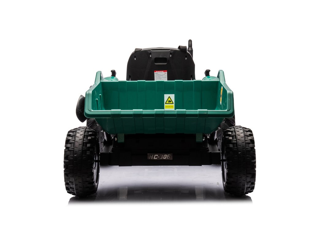Elektrický traktor HC-306 s přívěsem v tmavě zelené barvě nabízí jedinečný zážitek pro malé milovníky traktorů Tento traktor na akumulátor je vybaven dvojicí motorů o výkonu 95W a poskytuje automobilovou automatickou převodovku s třemi rychlostmi, což zajišťuje plynulou jízdu