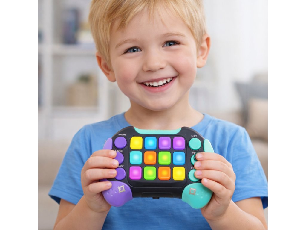 Představujeme vám revoluční elektronickou herní konzoli Light Spot, ideální pro rozvoj vašich dětí! Spojuje dynamickou zábavu s posilováním reflexů, paměti a koncentrace. Ergonomický design, inspirovaný herními kontrolery, zajistí pohodlný úchop i během delších herních seancí. Barevné, osvětlené tlačítka nejen přitahují pozornost, ale i lákají k aktivní hře.