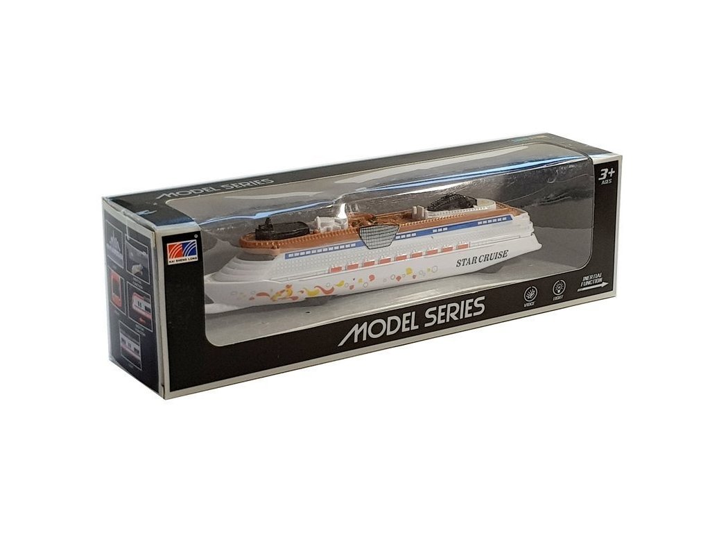 Představujeme elektronickou loď na baterie se světly a zvuky, ve které se vaše dítě může stát kapitánem výletní lodi a plout po různých mořských zátokách, kam jen představivost dovolí. Tato důkladně zpracovaná hračka zajistí fascinující zábavu pro celou posádku i pasažéry, které si vaše dítě vybere na svůj plavbu. Model je vyroben z plastových částí, s maximální péčí o detaily. Na spodní straně lodi se nachází prostor na baterie, spínač světel a zvuků, které přenášejí malého dobrodruha do světa mořských dobrodružství. V přední části i na zádi lodi jsou instalovány modře svítící diody, díky čemuž může pokračovat v zábavě i ve tmě. Dalším plusem jsou čtyři kolečka namontovaná na spodní část lodi, takže se může pohybovat po podlaze, koberci, v jakémkoli místě doma.