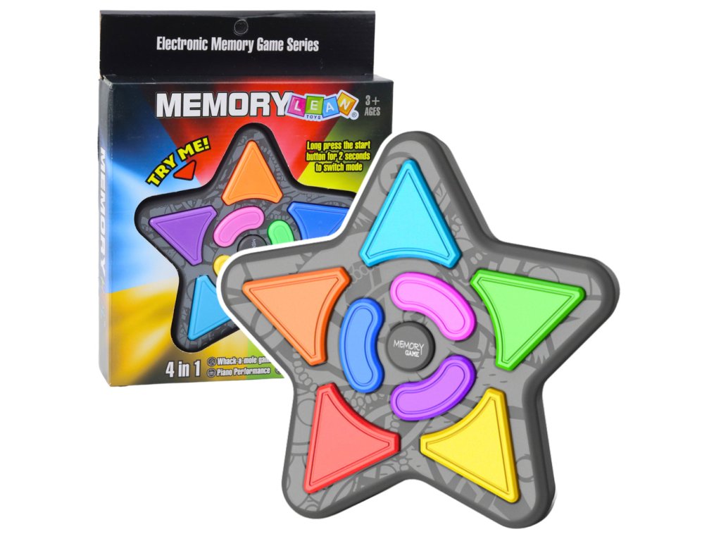 Elektronická logická hra ve tvaru hvězdy je skvělou volbou pro děti od 3 let věku Tato hračka rozvíjí paměť, koncentraci a reflexy díky zapamatování a opakování sekvencí světel a zvuků