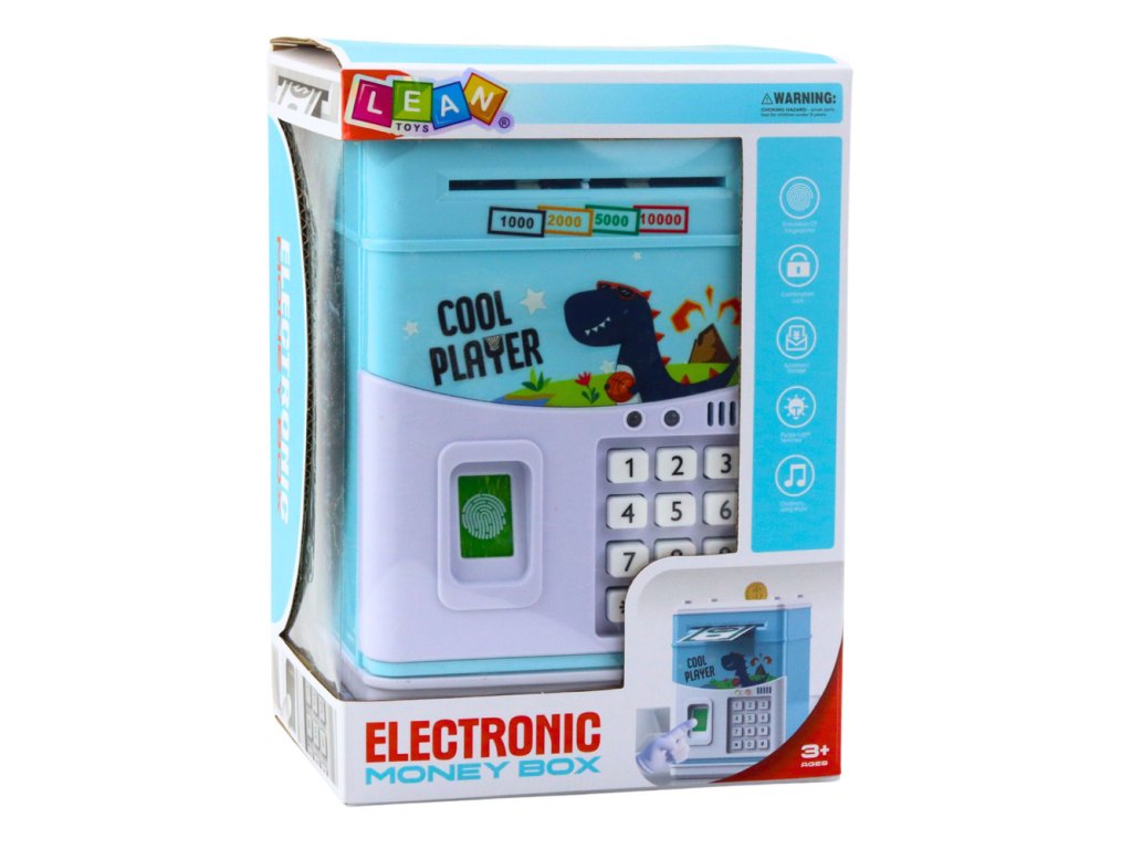 - Elektronický sejf pro děti s dinosaury je funkční a atraktivní edukační hračka, která učí děti šetřit a být odpovědné