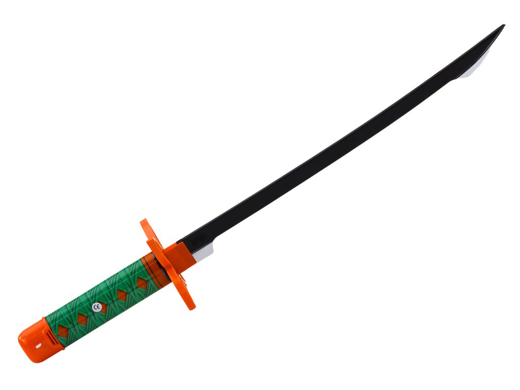 Samurajský meč Nichirin na baterie Pohodlná rukojeť Zelený zvuk Samurajský meč je hračka, která přenese vaše dítě do fascinujícího světa samurajských válečníků.