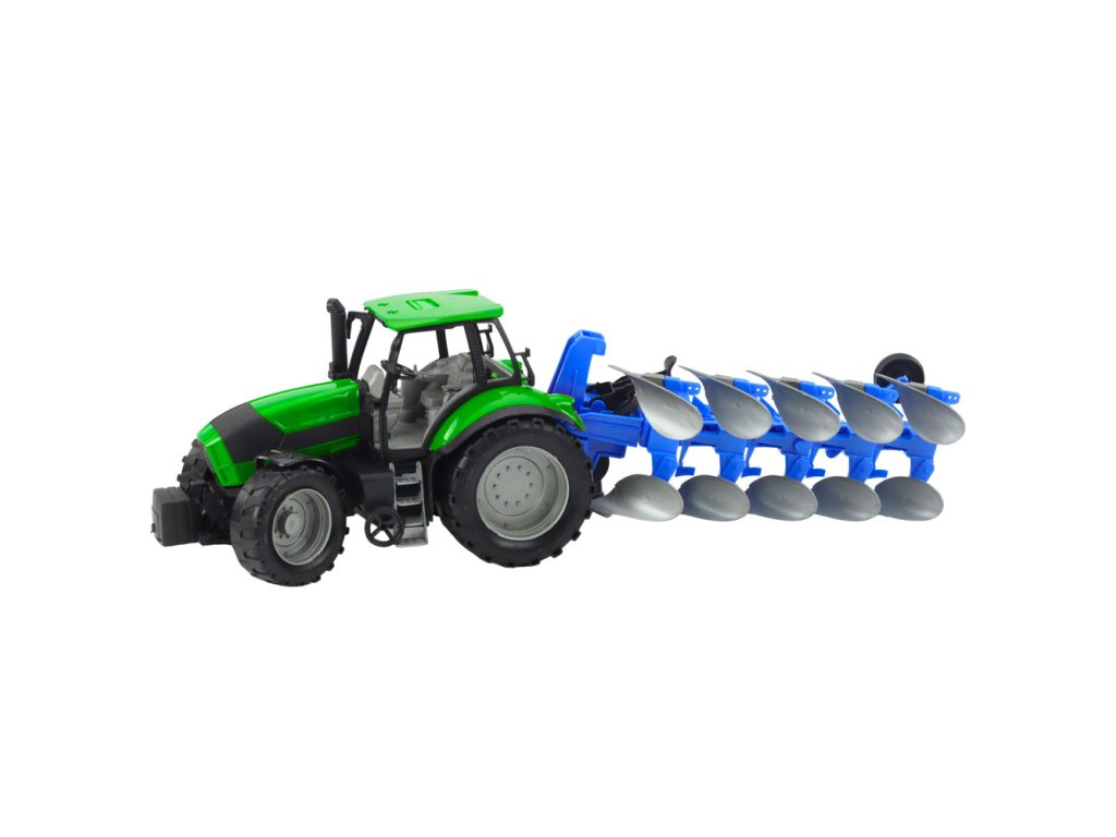 - Barva: Zeleno-černý traktor, modrý pług