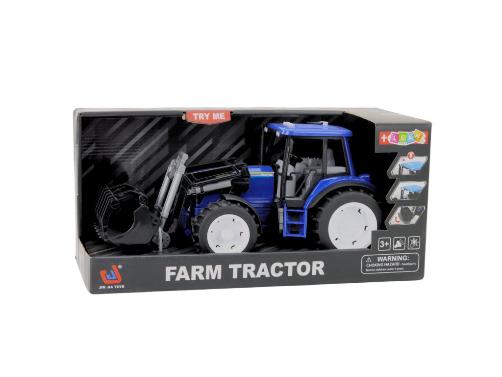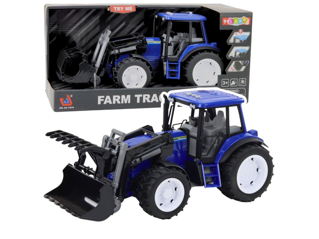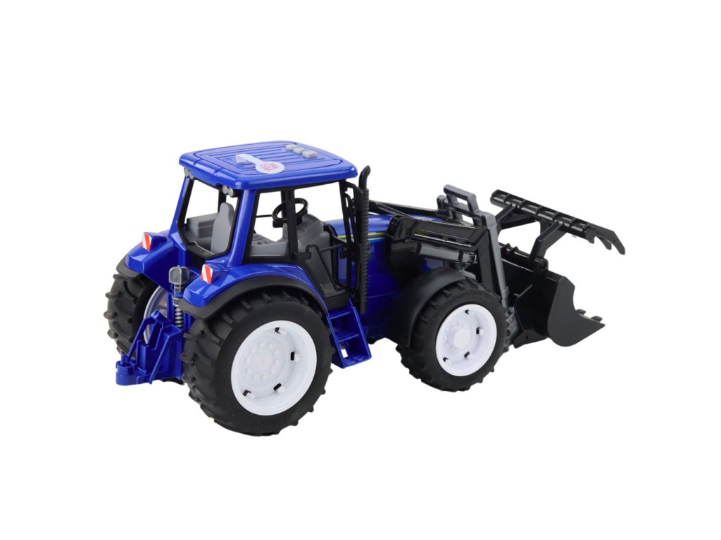 Farmářský Traktor s Pohyblivou Lžící Světla Zvuky Modrý 1:10