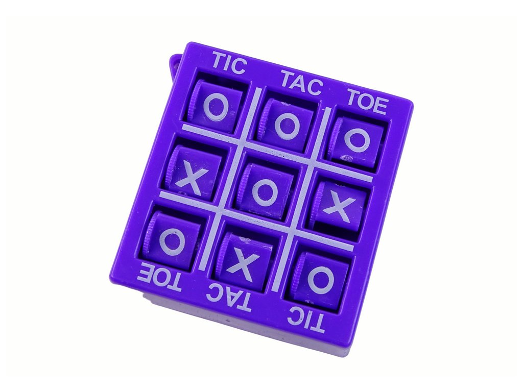 Hra Křížky a kroužky 4,5 cm fialová Jedinečná hra křížky a kruhy o rozměrech 4,5 cm x 5 cm x 1 cm Tato hra se vejde do každé kapsy, takže je ideální na cesty a příjemné trávení času kdekoli