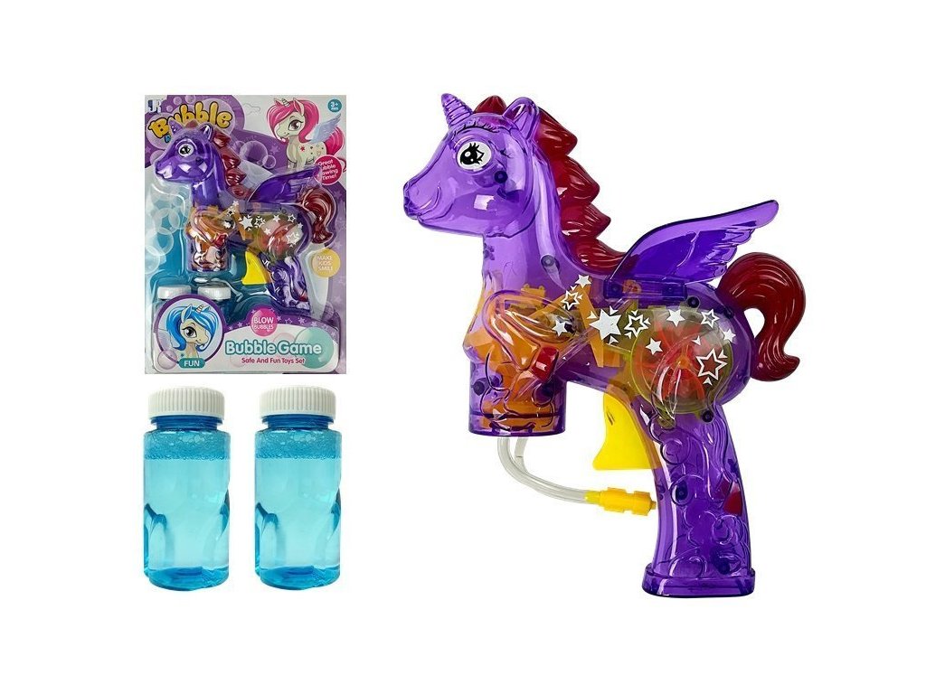 - Pistole na mýdlové bubliny jednorožec fialová Pistole na mýdlové bubliny je hračka, která potěší každé dítě