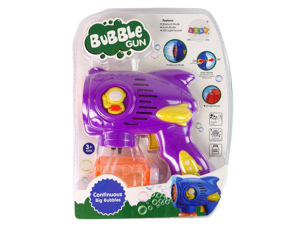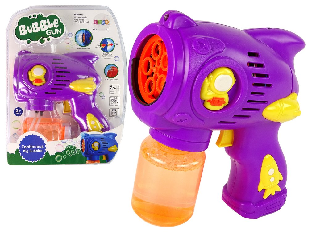 - Stroj na mýdlové bubliny fialový Jedná se o neobvyklou hračku, která nejenže poskytuje fascinující zábavu, ale také stimuluje vývoj dítěte
