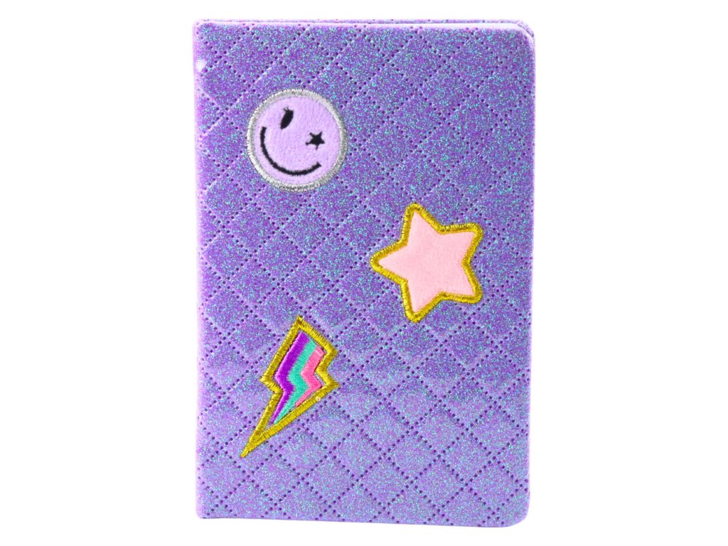 Další ozdobou jsou barevné nášivky ve tvaru hvězdičky, usměvavé tváře a blesku, které dávají zápisníku moderní, mladistvý charakter Uvnitř naleznete 80 listů s linkami