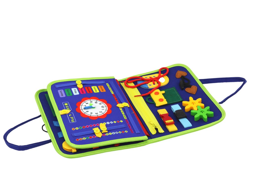 - Díky rozmanitým manipulačním úkolům, jako jsou posuvníky, knoflíky, hodiny, tkaničky nebo spony, se děti učí motorické koordinaci a samostatnosti při provádění každodenních činností