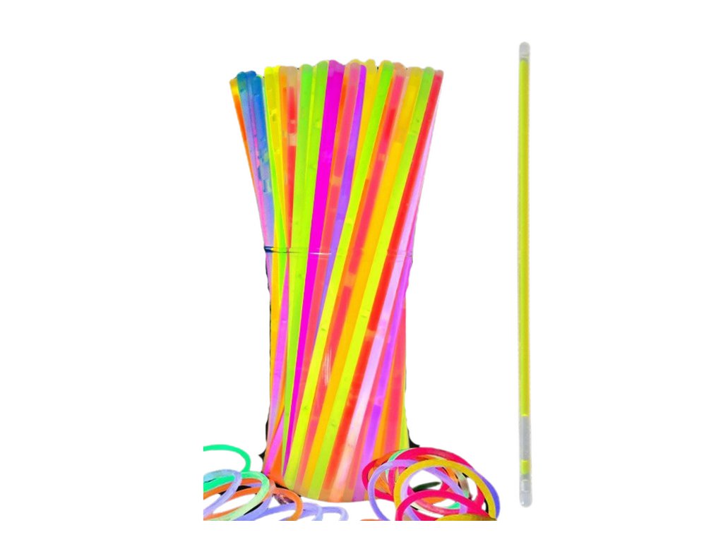 Fluorescenční pásky v balení po 100 kusech nabízejí nádherný výběr barev Tyto multibarevné pásky, které svítí ve tmě, jsou skvělými dekoracemi nebo se dají použít jako náramky
