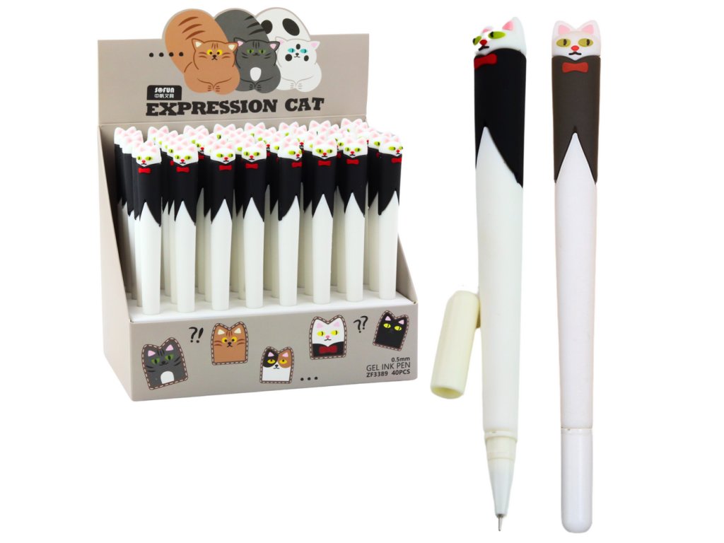 Gelové pero Kočka s Motýlkem černobílé je unikátní kombinací funkčnosti a kreativního designu Stylizované jako elegantní kočka s motýlkem, toto pero vyniká nejen zábavným vzhledem, ale také vysokou kvalitou zpracování