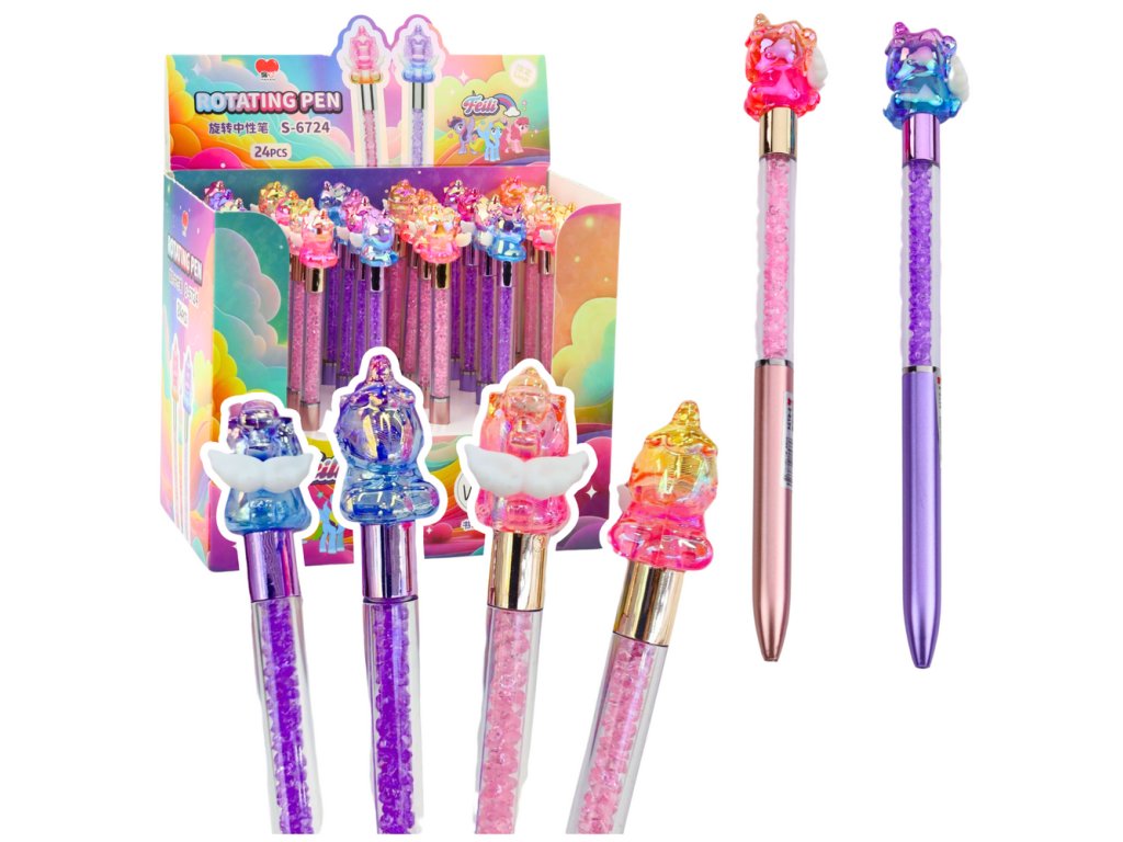 Gelové pero s figurkou jednorožce s křídly – Toto barevné gelové pero s ozdobnou figurkou jednorožce s křídly je jedinečnou kombinací funkčnosti s magickým, pohádkovým vzhledem, který potěší jak děti, tak i dospělé milovníky fantastických doplňků.