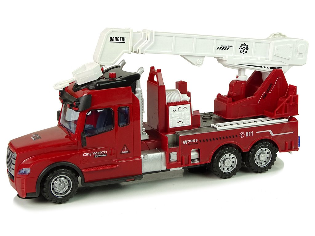 - Díky velkým rozměrům a dlouhému výsuvnému jeřábu (až 34 cm + 10 cm dodatečného dosahu) může dítě simulovat skutečné hasičské akce, hašení požárů, zvedání břemen a záchranu ohrožených osob