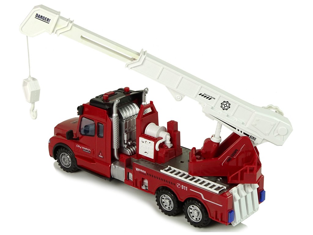 Díky velkým rozměrům a dlouhému výsuvnému jeřábu (až 34 cm + 10 cm dodatečného dosahu) může dítě simulovat skutečné hasičské akce, hašení požárů, zvedání břemen a záchranu ohrožených osob Speciální otočný knoflík na boku vozidla umožňuje spouštět hák na laně, což činí hru ještě realističtější