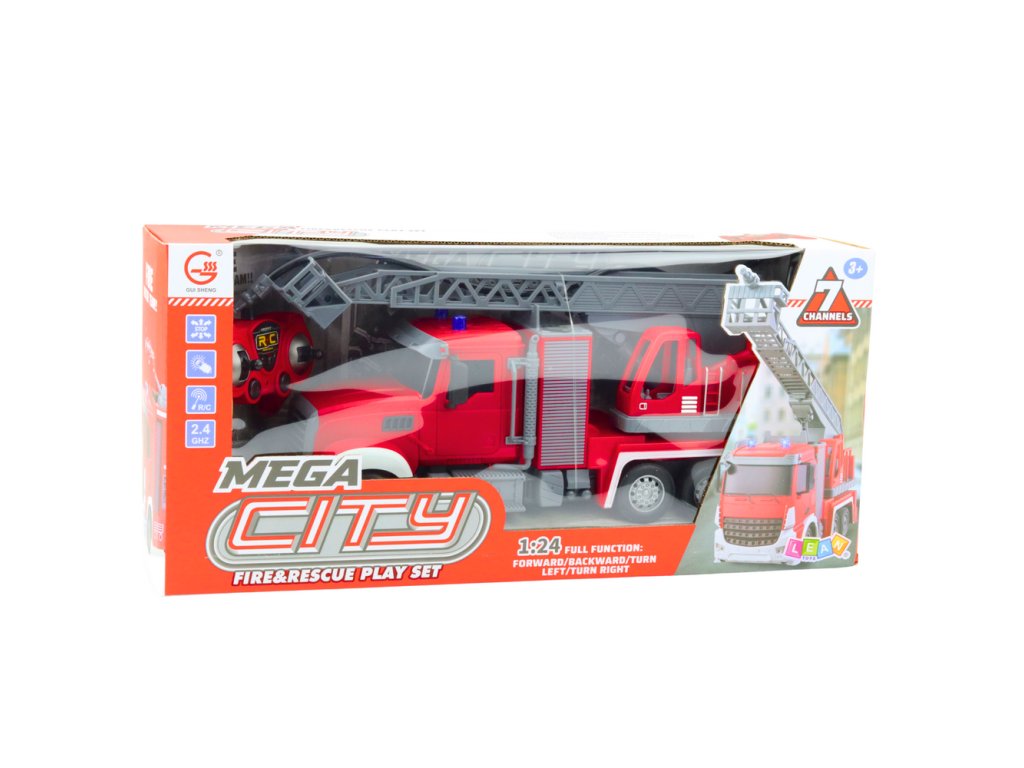 Přesné držení detailů a proporcí skutečného hasičského vozu je umožněno měřítkem 1:24 Použití dálkového ovládání na frekvenci 2,4 GHz poskytuje stabilní a přesné ovládání v každých podmínkách, ať už doma nebo venku