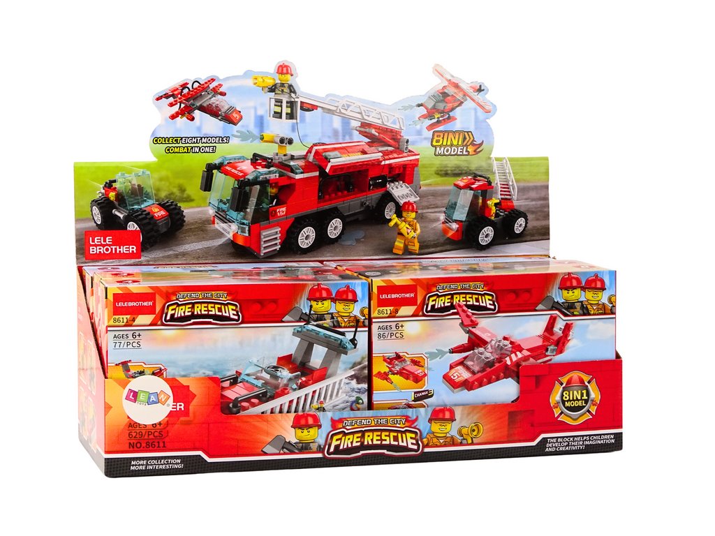 Sada obsahuje různé vzory hasičských vozidel, včetně motocyklů, lodí, letadel a terénních vozidel, které pomohou mladým konstruktorům objevit svět záchranných služeb. Každý model se vyznačuje unikátním designem a konstrukcí, což činí sadu atraktivní a zajímavou pro děti.