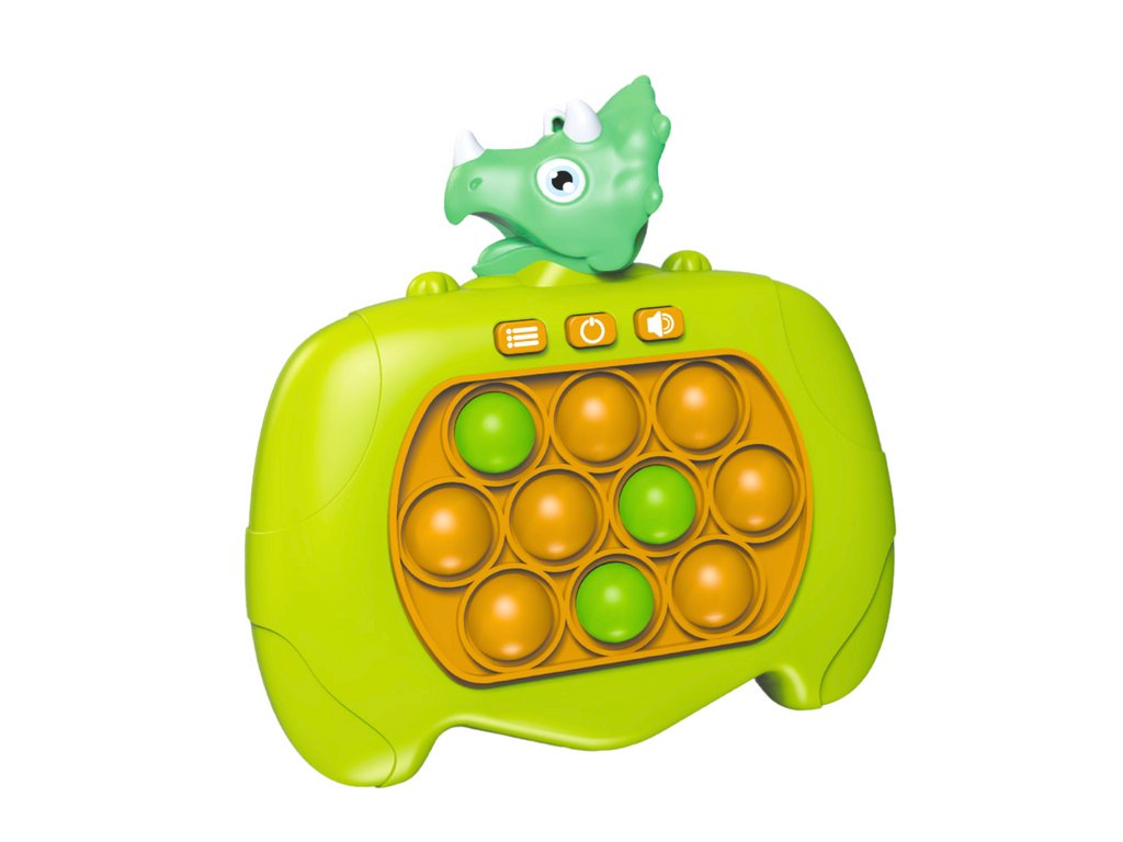 - Herní konzole Pop-It ve tvaru zeleného dinosaura je vynikající hračka, která kombinuje zábavu s edukativními prvky