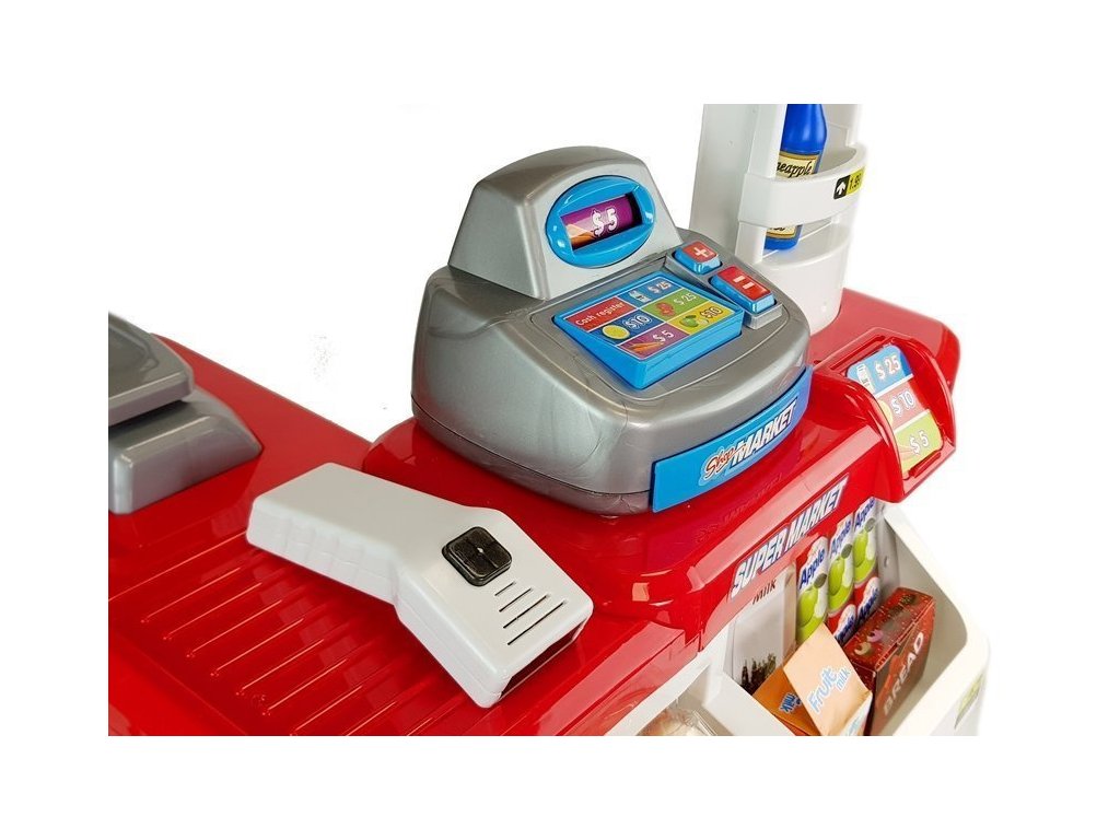 Herní tržiště s vozíkem Pokladna Skener Potraviny Nákupy je ideální způsob, jak děti zaujmout a podpořit jejich kreativitu. Hra na obchod je jednou z nejoblíbenějších dětských zábav a přináší mnoho výhod. Může se tak stát skvělou příležitostí ke společné hře celé rodiny. Děti se během hry na obchod snadno a zábavně naučí základy nákupu a hodnotu peněz, což jim pomůže v budoucnu. Díky této aktivitě rozvíjí logické myšlení a představivost. Po stisknutí skeneru uslyšíte zvuk skenování a uvidíte světlo, jako na skutečné pokladně. Na pokladně se zobrazuje hodnota zboží.