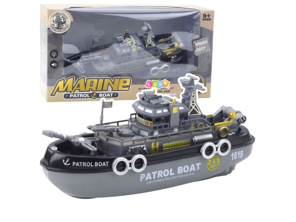 Hlídková Loď Světla Zvuky Vodní Sprej Pohyblivé Prvky