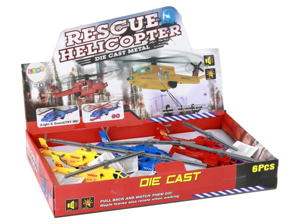 Helikoptéra Hliníkový záchranný vrtulník s pohonem Mix zvuk světel Jedná se o sadu hliníkových vrtulníků, které jsou inspirovány modely letadel Každé letadlo má jedinečný design a je k dispozici v různých barvách, což dodává sadě rozmanitost