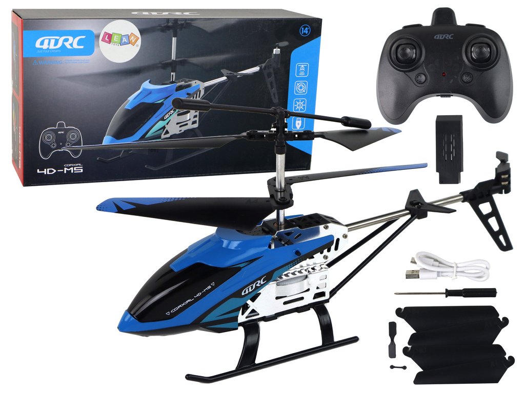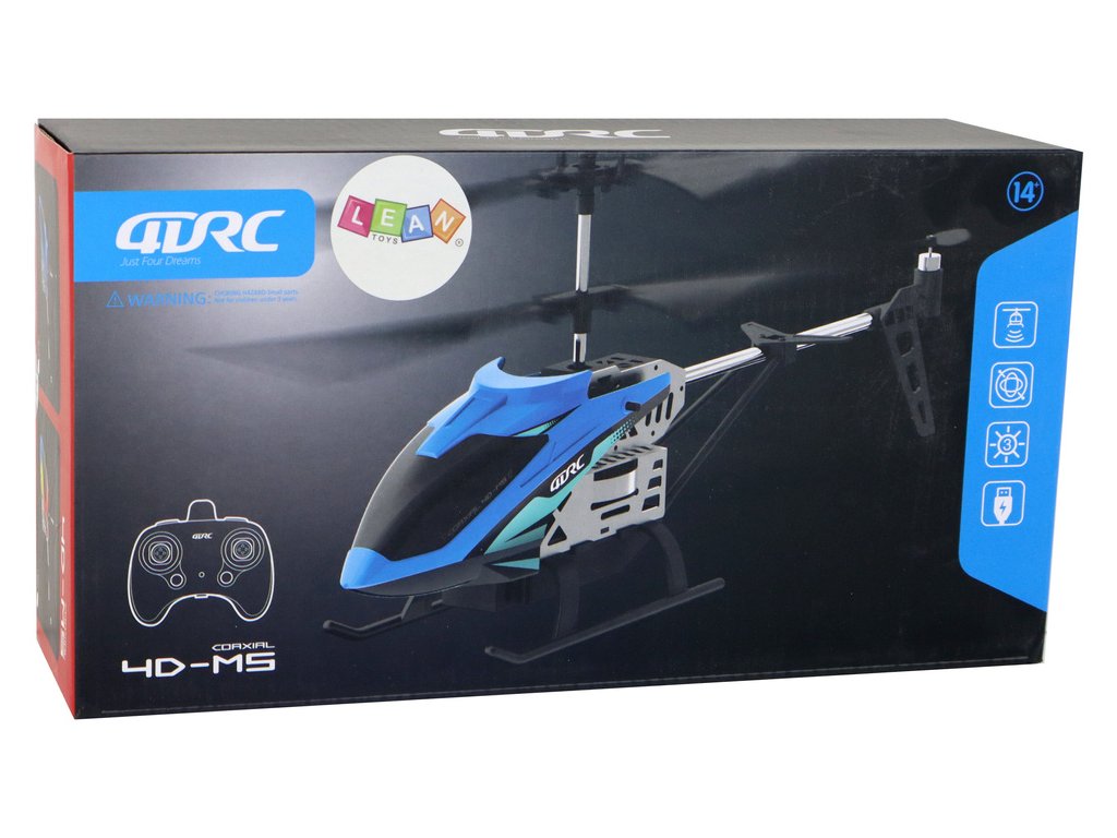 ALUMINIUM HELICOPTER RC 2.4G BLUE 15 MINUTES OF FLIGHT Hliníkový RC helikoptéra v modré barvě je moderní nabídka pro milovníky dálkově ovládaných letadel Díky funkci udržování výšky a použití technologie 2.4G je ovládání tohoto modelu velmi jednoduché a příjemné