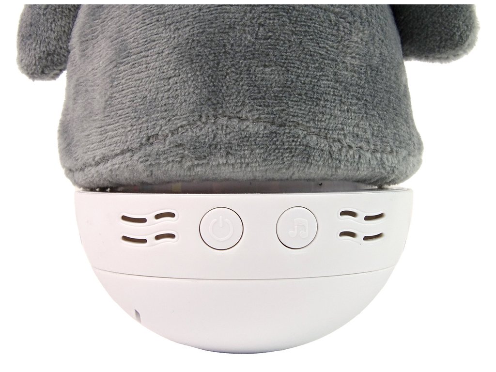 - Slon má ve spodní části dvě tlačítka, jedno slouží ke spuštění hračky, druhé ke změně melodie