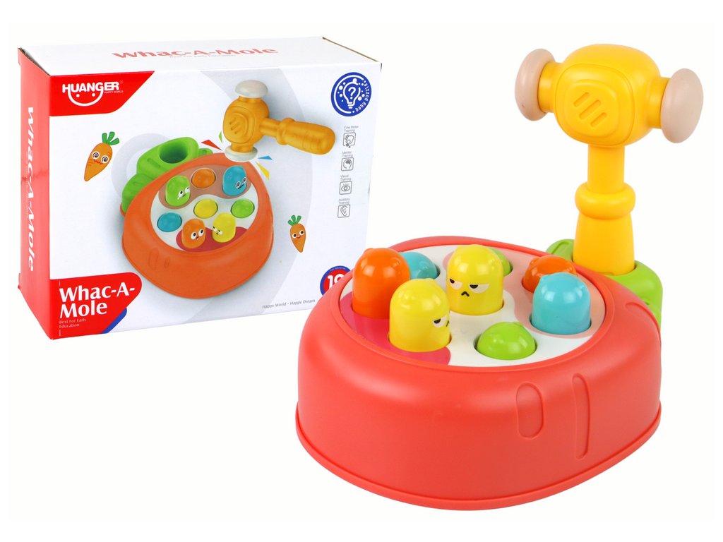 - Děti mohou kladívkem srážet barevné postavičky, což je baví a rozvíjí jejich manuální dovednosti
