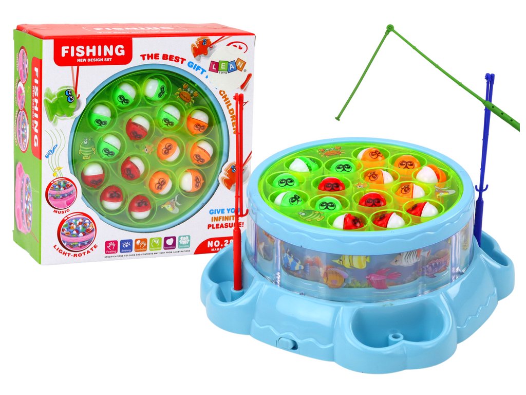 Zahrnuto je i poutavé světelné a zvukové efekty, které dodávají hře na atraktivitě a interaktivitě. Během fungování hračky se jezírko otáčí harmonicky, s barevnými akvarijními rybkami uvnitř, což vytváří magickou atmosféru. Celkové zážitky jsou doplněny příjemnou melodií, která přidává na kouzlu a radosti z celé hry. Není to jen hra, ale skutečný zážitek, který podporuje manuální dovednosti, pozorovací schopnosti a koordinační dovednosti u dětí.
