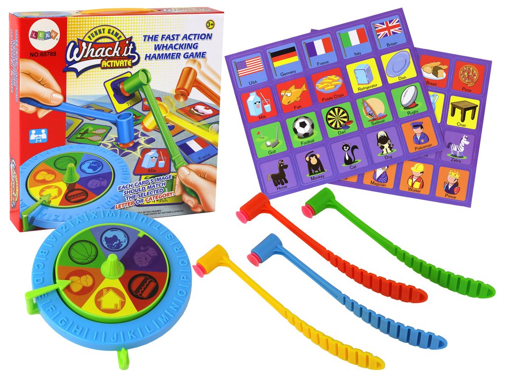 - Zábava a rozvoj: Propojte obrázky na kartách s písmeny nebo kategoriemi pomocí spinneru a kladívka