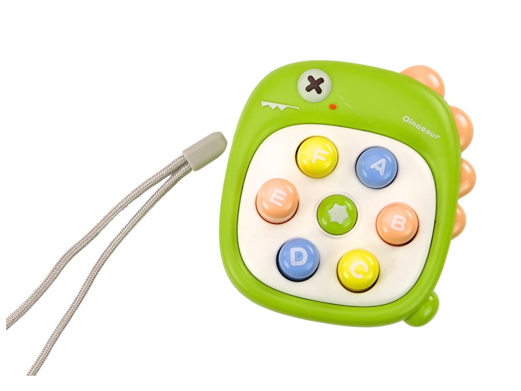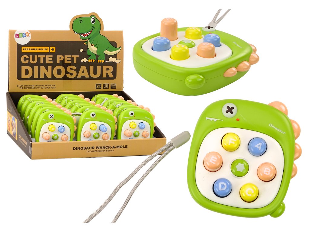 - Interaktivní hra dovednosti Whack a Mole Písmenka Dinosaurus je inovativní edukativní hračka v zářivé zelené barvě, jejíž design připomíná dinosaura