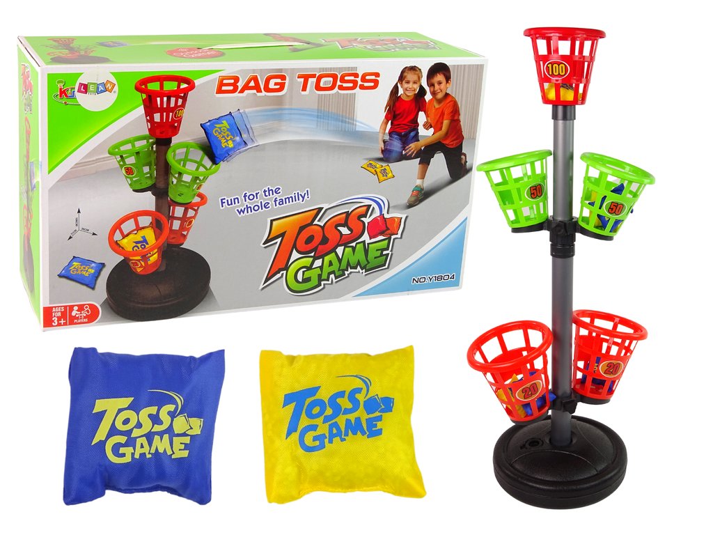 Hra Dovednostní Hod Granátů na Terč do Koše Body je ideální pro všechny, kdo hledají zábavnou a soutěživou aktivitu pro celou rodinu. Tato hra rozvíjí koordinaci pohybů, zdatnost a soustředění, zatímco přináší dávku adrenalinu a smíchu. Stojan s koši lze umístit jak uvnitř, tak venku, což umožňuje pořádat soutěže kdekoli. Hra spočívá v tom, že každý hráč musí hodit barevné sáčky do koše odpovídajícího jejich barvě a následně spočítat bodové skóre podle čísel na koších.