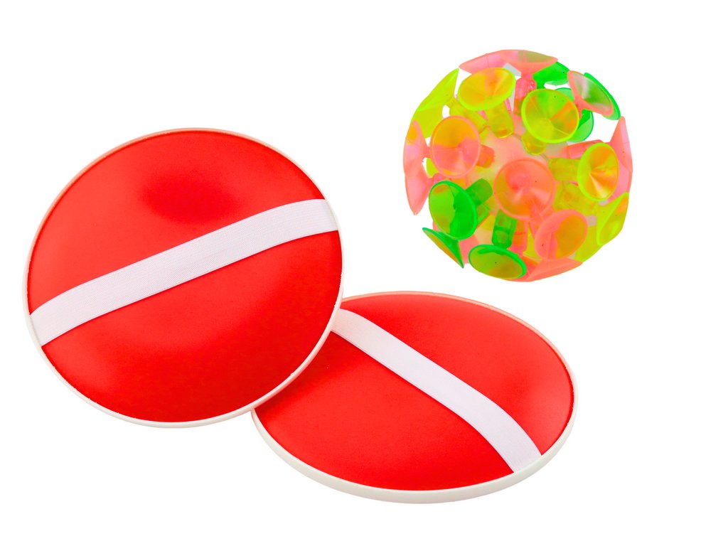 - Hra dovednostní kulaté pálky míček s přísavkami červený je skvělým doplňkem pro každou sbírku venkovních her