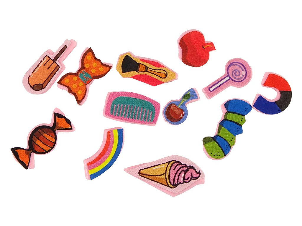 - Na hracím plánu je 12 různých míst na těle jednorožce, na která je třeba položit malé prvky/jídlo