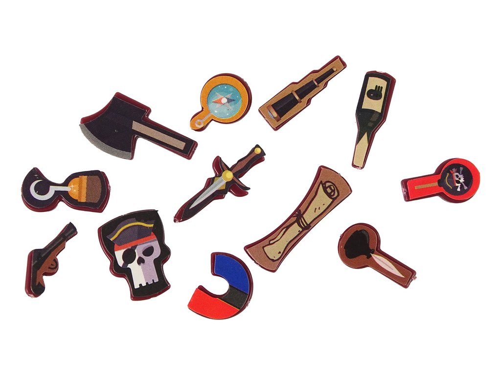 - Na hracím plánu je 12 různých míst na těle piráta, na která je třeba položit malé doplňky patřící pirátovi