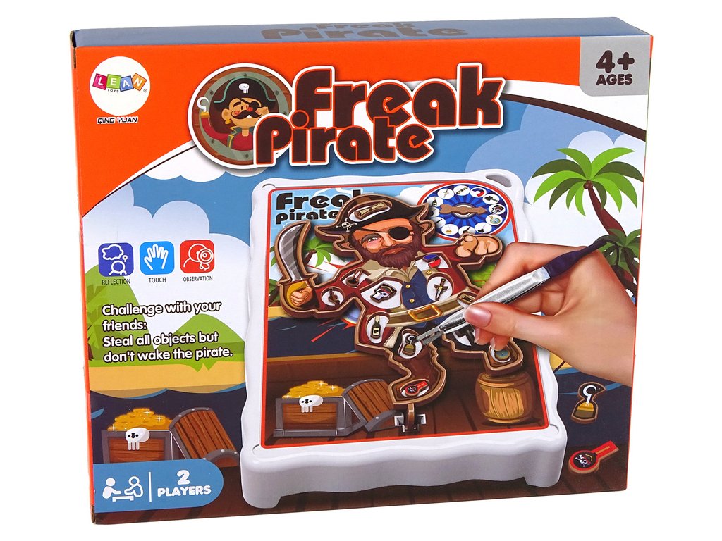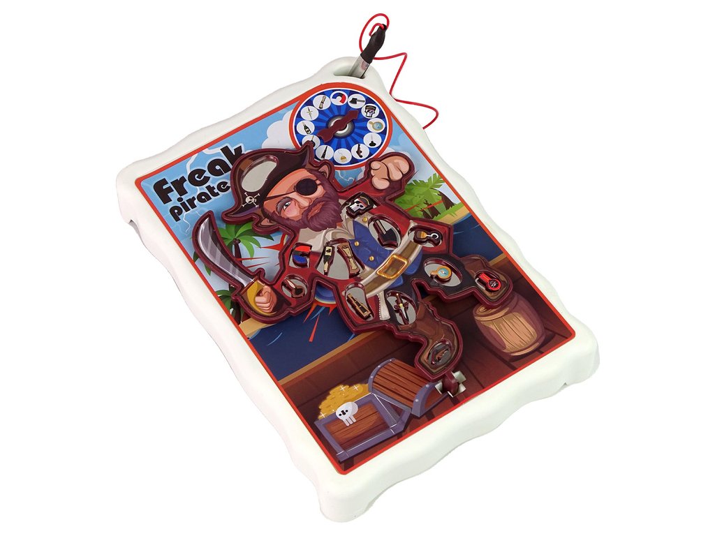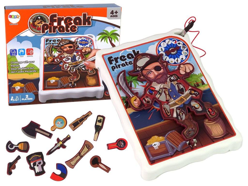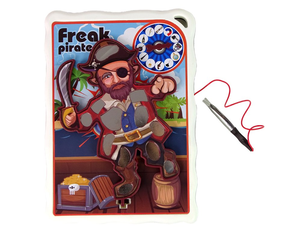Je to ideální volba pro rodinnou zábavu nebo hraní s přáteli Na hracím plánu je 12 různých míst na těle piráta, na která je třeba položit malé doplňky patřící pirátovi
