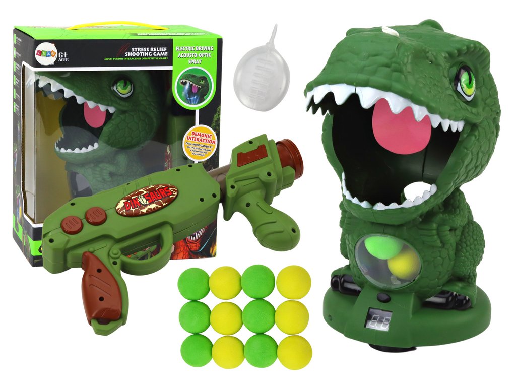 Hra je intuitivní a snadná – jednoduše nabijte pistoli měkkými kuličkami a snažte se zasáhnout dinosaurovu tlamu. Když se trefíte na jazyk dinosaura, hra vydá zvuk, který potvrzuje zásah, a na malém LCD displeji uvidíte své skóre. Sada zahrnuje vše potřebné k začátku hry – pistoli a speciální kuličky.