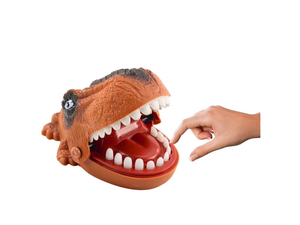 - Hráči musí stisknout jeden ze zubů ve spodní čelisti dinosaura, ale jeden z nich je obzvláště citlivý a může způsobit, že dinosaurus "kousne" hráče!
