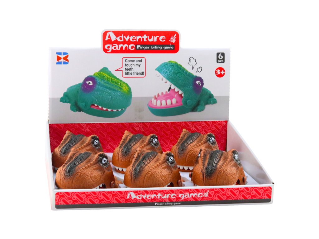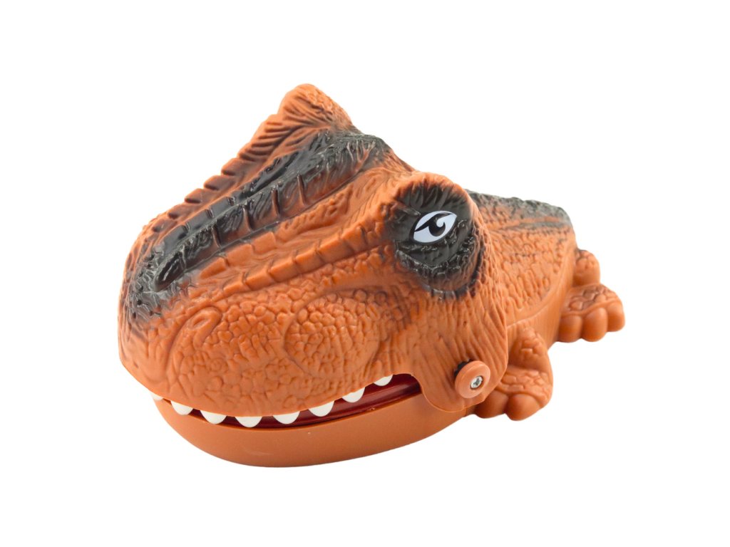 Hra Dovednostní Útočící Kousající Dinosaurus Hnědý je vzrušující zábava, která přináší dětem spoustu emocí Hráči musí stisknout jeden ze zubů ve spodní čelisti dinosaura, ale jeden z nich je obzvláště citlivý a může způsobit, že dinosaurus "kousne" hráče!
