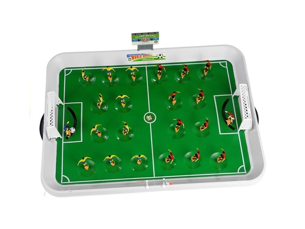 Prezentovaný model je velká sada – skládá se z hřiště a dvou kompletních týmů, každý s jedenácti hráči. Figurka brankáře je pohyblivá, takže pro zpestření hry s ní můžete hýbat, aby chytře bránila branku. Pozvěte několik lidí a uspořádejte skutečný fotbalový turnaj nebo mistrovství světa.