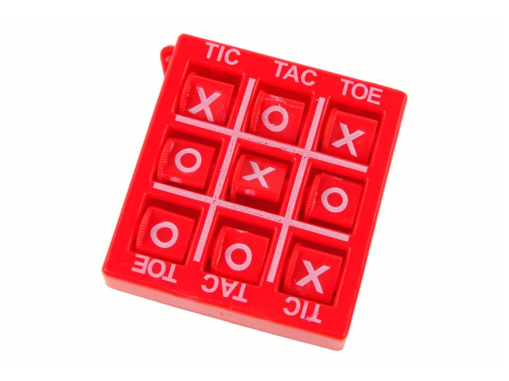 Hra Křížky a kroužky 4,5 cm červená Jedinečná hra křížky a kruhy o rozměrech 4,5 cm x 5 cm x 1 cm.