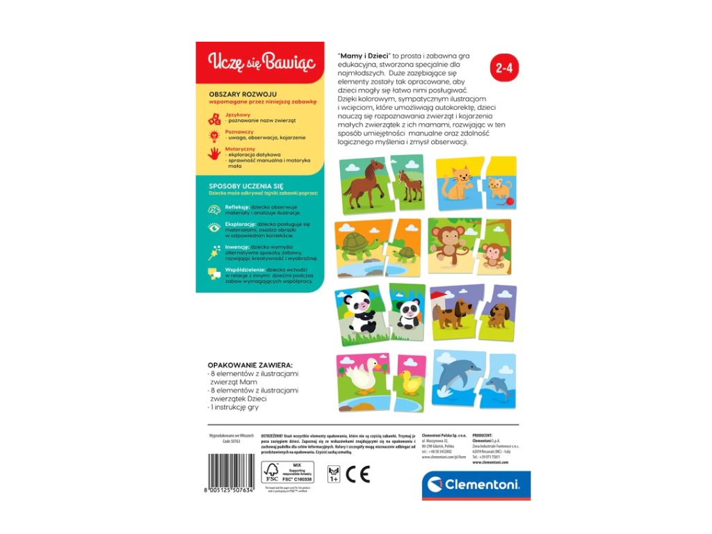 Objevte kouzlo hry MAMY I DZIECI, která nejenže přináší hodiny zábavy, ale také rozvíjí dovednosti vašich dětí. Tato edukativní hra kombinuje učení s hravostí, takže děti ani nepoznají, že se vzdělávají. S velkými a odolnými díly, které jsou zároveň bezpečné, si mohou hrát bez obav. Barevné ilustrace zvířat zaujmou a pobaví, zatímco se děti učí spojovat mláďata s jejich maminkami. Zároveň jsou podporovány i manuální dovednosti a logické myšlení, což činí tuto hru ideálním nástrojem pro rozvoj smyslu pro pozorování. Pořiďte si tuto hru a podpořte kreativní a zábavný rozvoj svých ratolestí!