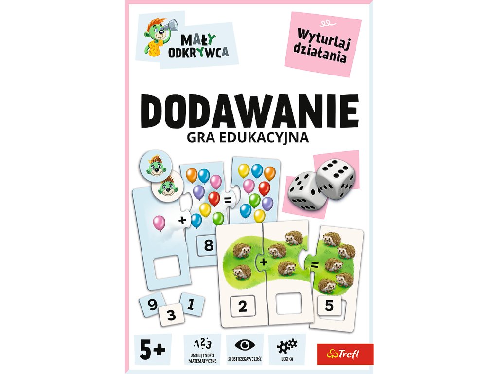 Hra - Sčítání/Malý Objevitel Trefl 02805 je vzdělávací skládanka pro předškoláky, která dětem přátelským způsobem přibližuje svět sčítání.