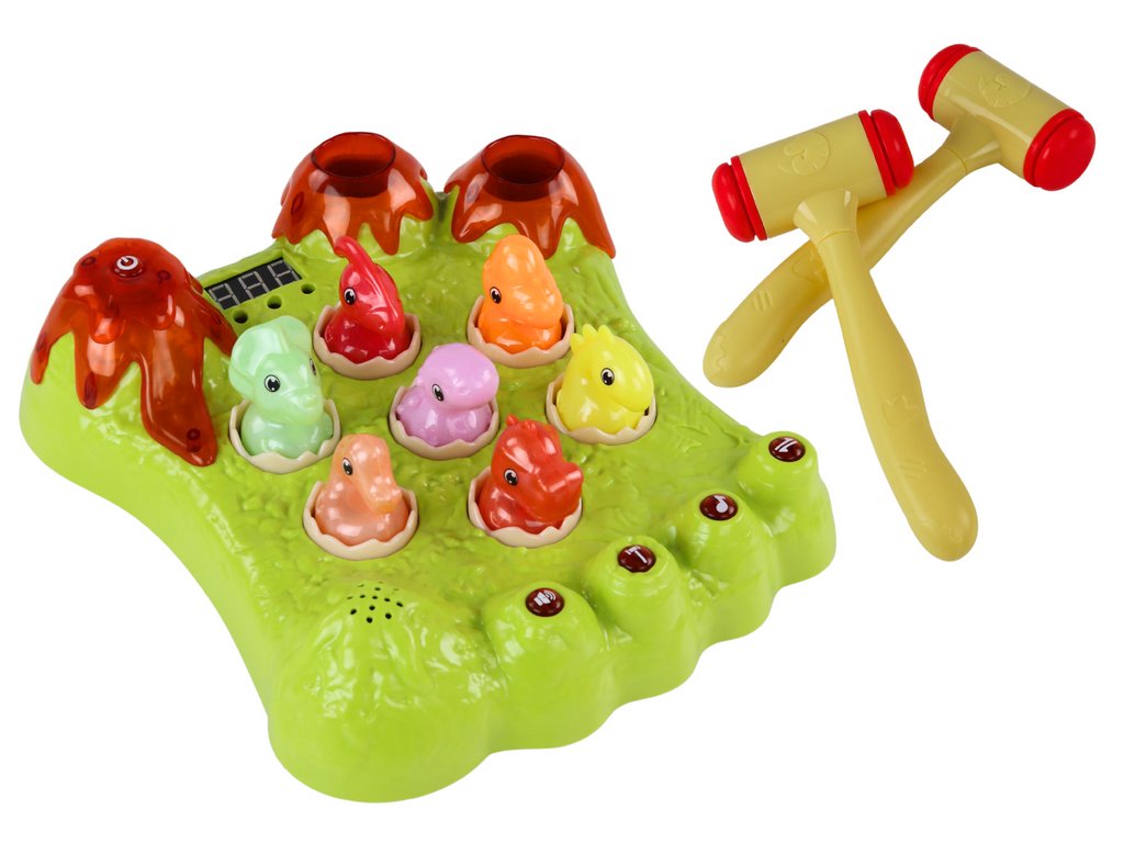 Hra Wack-A-Mole Dinosauři Deska Kladívka Zelená Světla Zvuky