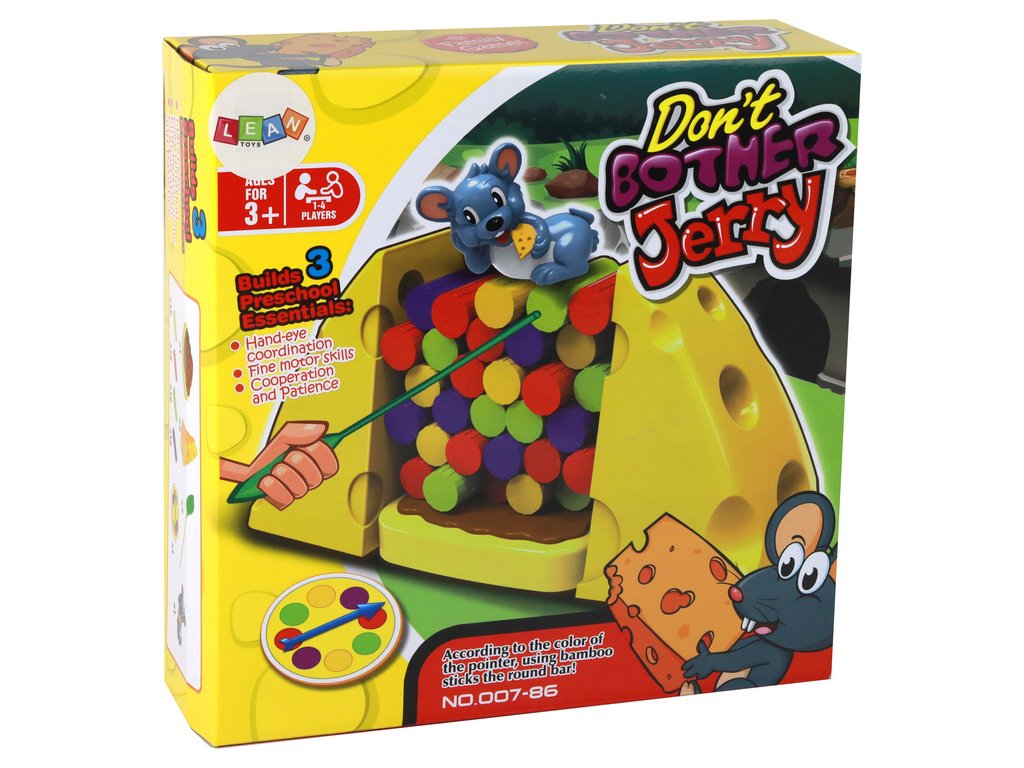 Představujeme vám výjimečnou hru zručnosti Nezhod Míšu - ideální zábavu pro celou rodinu. Tato napínavá a nepředvídatelná hra vás zavede do světa zábavy, napětí a radosti. Od zřízení základny z několika sýrových kousků budete pokračovat ve stavbě věže z barevných kostek. Na vrchol věže pak umístěte přátelského myšího hosta, který má právě po jídle a neakceptuje žádné rušení. Hráči se pokusí vytahovat kostky dle náhodně vybraných barev. Je však důležité být pečliví, aby myš nespadla! Tato hra nejenže rozvíjí zručnost a trpělivost, ale také buduje strategické myšlení. Díky barevným kostkám, interaktivní myši a vzrušující konkurenci se Nezhod Míšu stane nezapomenutelným zážitkem pro všechny hráče.