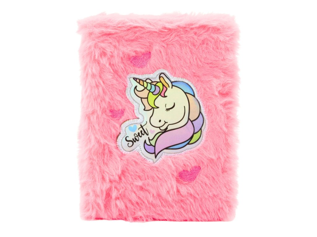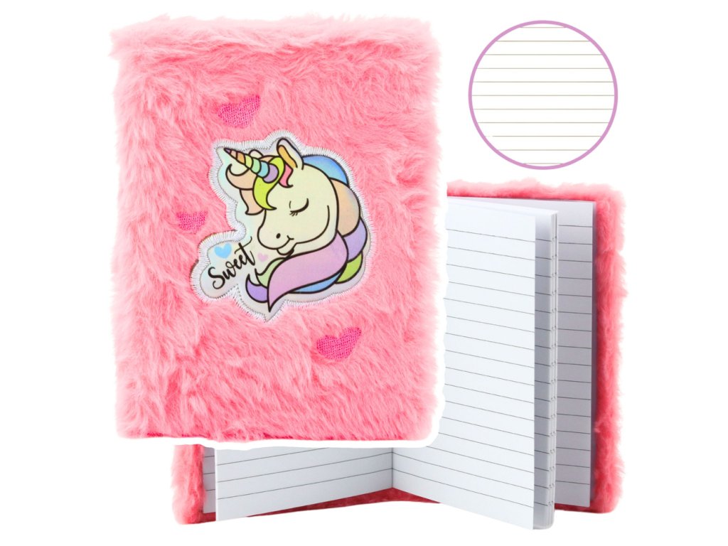 Huňatý Deník s Linkami Jednorožec Holografický Růžový A6 80 Listů