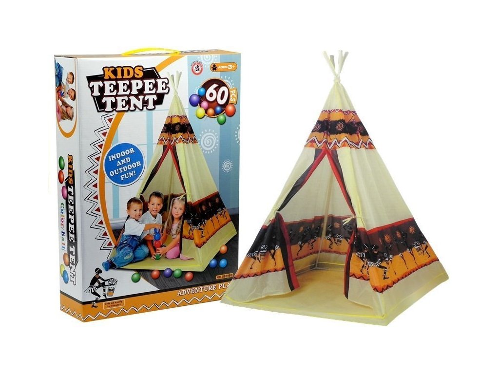 - Indiánský stan Tipi + 60 míčků 155 cm Tipi stan je skvělým místem pro hraní jak doma, tak venku na zahradě