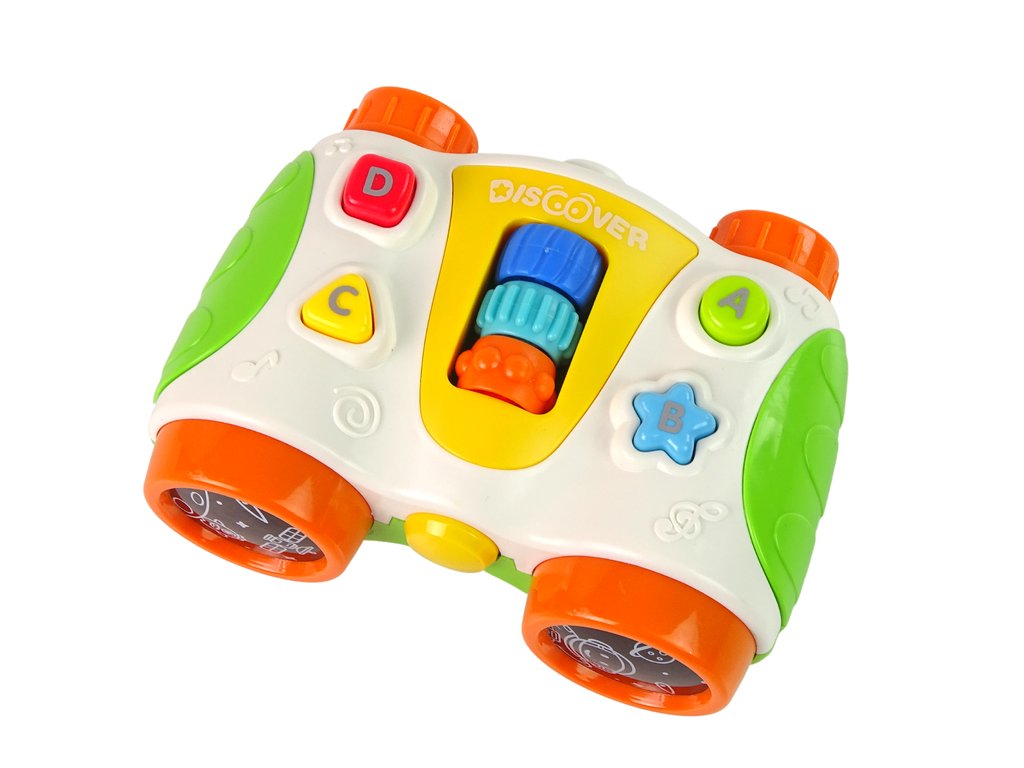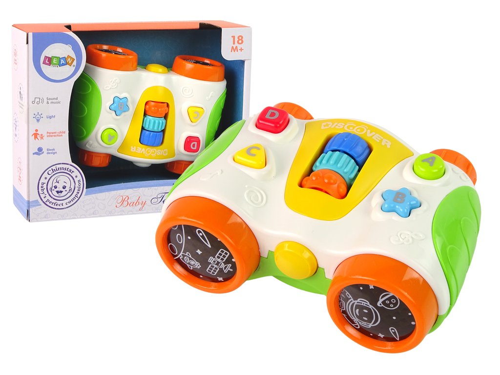 Multifunkční Interaktivní dalekohled pro nejmenší Baby Telescope Dalekohled je ideální pro malé děti, které jsou zvědavé na svět Barevná tlačítka spouštějí veselé zvuky a melodie a zároveň rozvíjejí schopnost rozpoznávání barev a tvarů