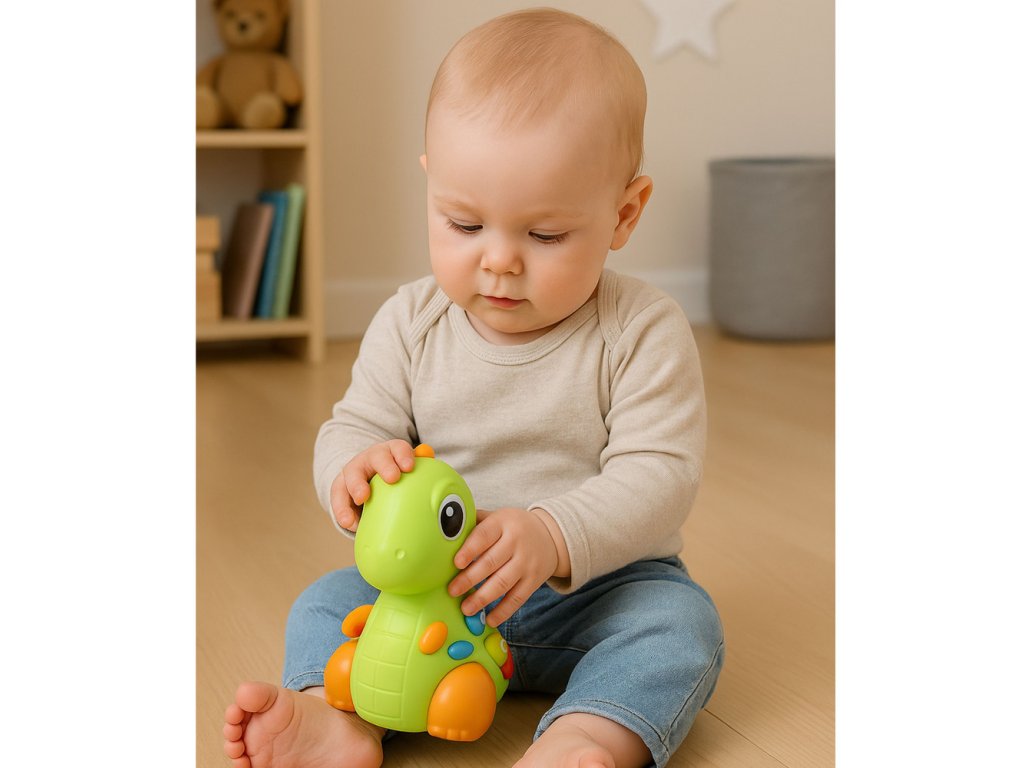 Objevte radost z hraní s naší interaktivní hračkou dinosaurus na kolečkách, která přináší světlo, zvuk a pohyb do života těch nejmenších. Tento pestrý a zábavný dinosaurus byl navržen speciálně pro děti, aby je motivoval k pohybu, plazení a objevování světa kolem sebe. Svítí, hraje veselé melodie a pohybuje se na kolečkách, což okamžitě přitahuje pozornost a podporuje aktivitu dítěte.